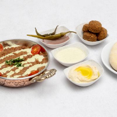 Foul „fasola”, falafel, hummus, tahini, pikle. Podawane z pitą.