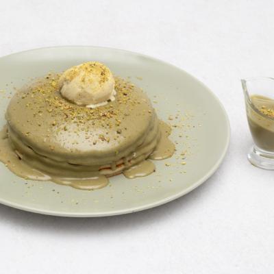 Krem pistacjowy, mielone pistacje, lody.