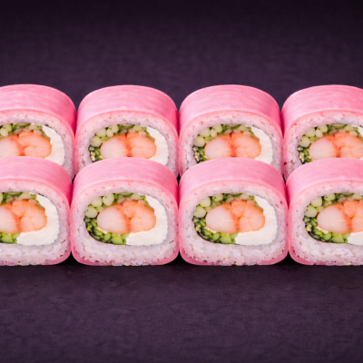 Ryż, papier sojowy, nori, serek, krewetka, sałata lodowa