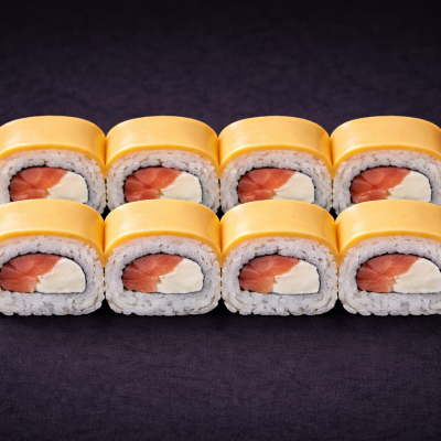 Ryż, nori, serek, łosoś wędzony, ser tostowy