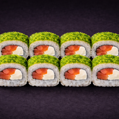 Ryż, nori, serek, łosoś, sos Sriracha Mayo, tobiko