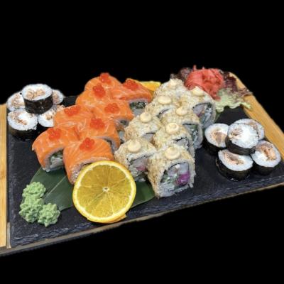 Krewetka Bonito roll x 8, hila klasyczna x 8 , Hosomaki łosoś grill x 10