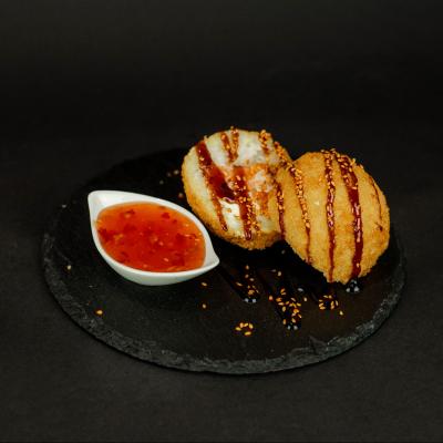 Ryż, mieszanka z parmezanu, panko, tempura, sos teriyaki