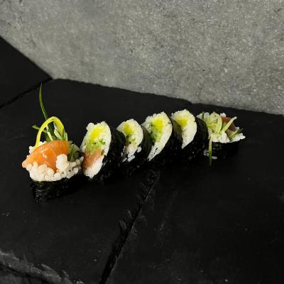 Łosoś marynowany/maślana, ryż, nori.
